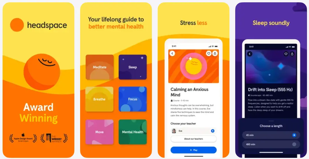 Headspace is counted among the top mental wellness and meditation apps that help reduce stress and anxiety through guided meditations. It offers simple exercises to help you relax, sleep better, and focus more clearly. In the app you can find variety of sessions for sleep, stress relief, or even improving your concentration. If you are dealing with mental health issues like depression, then this app is worth a try to calm your mind.